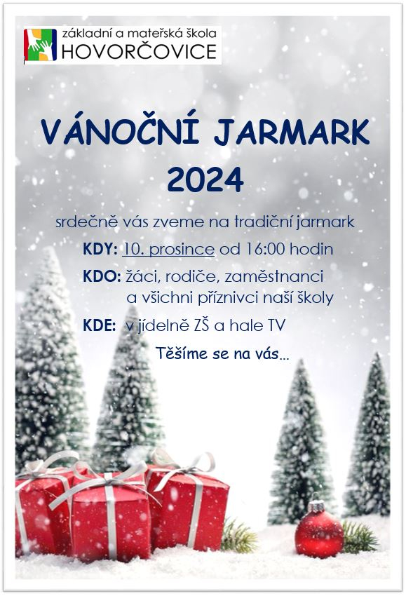10. prosince 2024Školní vánoční jarmarkPřijměte prosím pozvání na náš tradiční vánoční jarmark, který proběhne v úterý 10. 12. 2024 od 16:00 v jídelně ZŠ a TV hale. Více informací naleznete