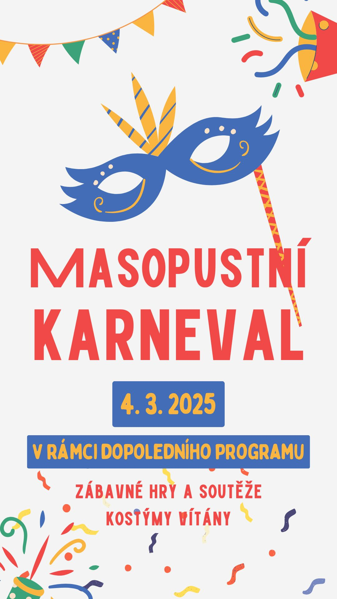 V úterý 4. 3. 2025 bude probíhat ve všech třídách mateřské školy "Masopustní karneval". Bližší info naleznete na nástěnkách v šatnách jednotlivých tříd.