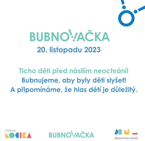 Naše škola se v pondělí 20. 11. 2023 připojí k celorepublikové akci, která upozorňuje na důležitost ochrany dětí před násilím v rodině. Bubnujte spolu s námi, aby bylo děti lépe slyšet! Více informací naleznete na webových stránkách: www.detstvibeznasili.cz.